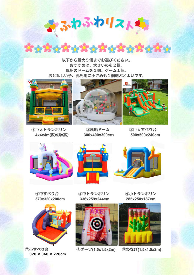 ふわふわ遊具を5台まとめて
